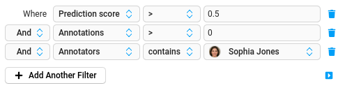 With filters and tabs, you can split data into different sections to be labeled by different annotators, or set up data in a particular order to perform labeling according to prediction score, or another value in your data.